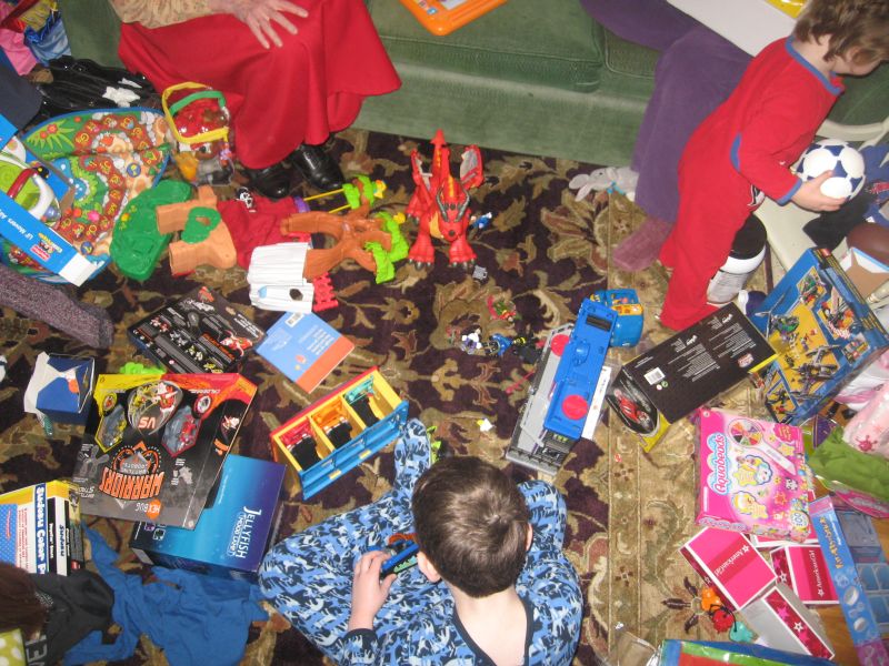 The usual Christmas morning activities ensued, with stockings, pumpkin bread pudding, the grandparents, presents, etc. In the afternoon while the kids were busy assembling LEGO sets or whatever, I lay down for a couple of hours. I was so tired I was beginning to shake, so that was a greatly appreciated rest. Indian food takeout for dinner, and the evening wrapped up with watching the latest “Doctor Who” Christmas episode.
