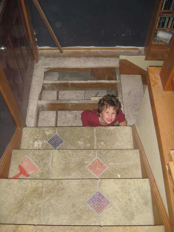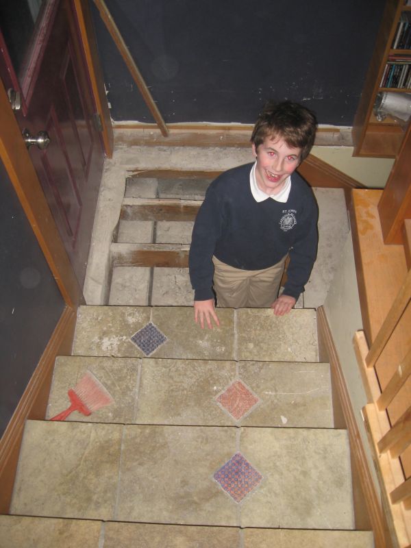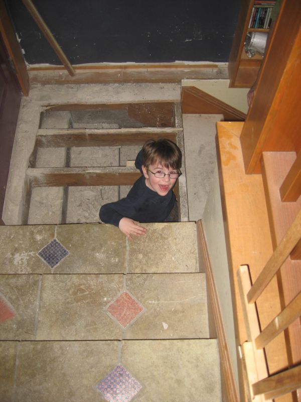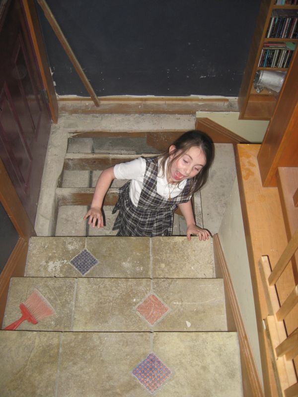 A few days later we had to take up the back stairs. I won’t go into why, you don’t really want to know. Here are the four younger kids, however, having a little fun being trapped in the dungeon.