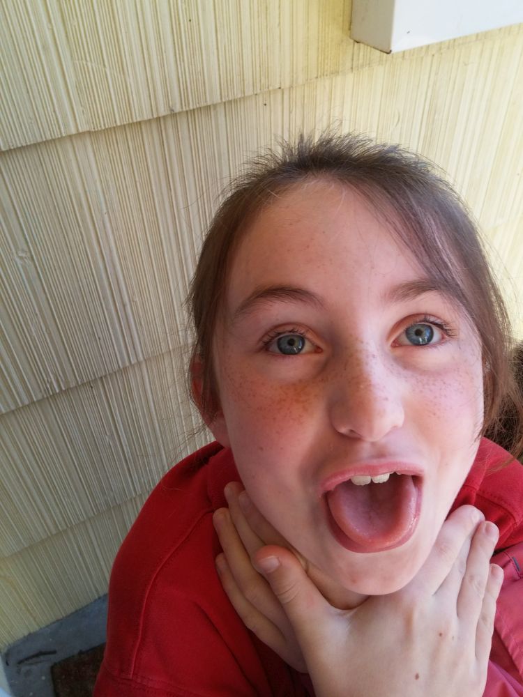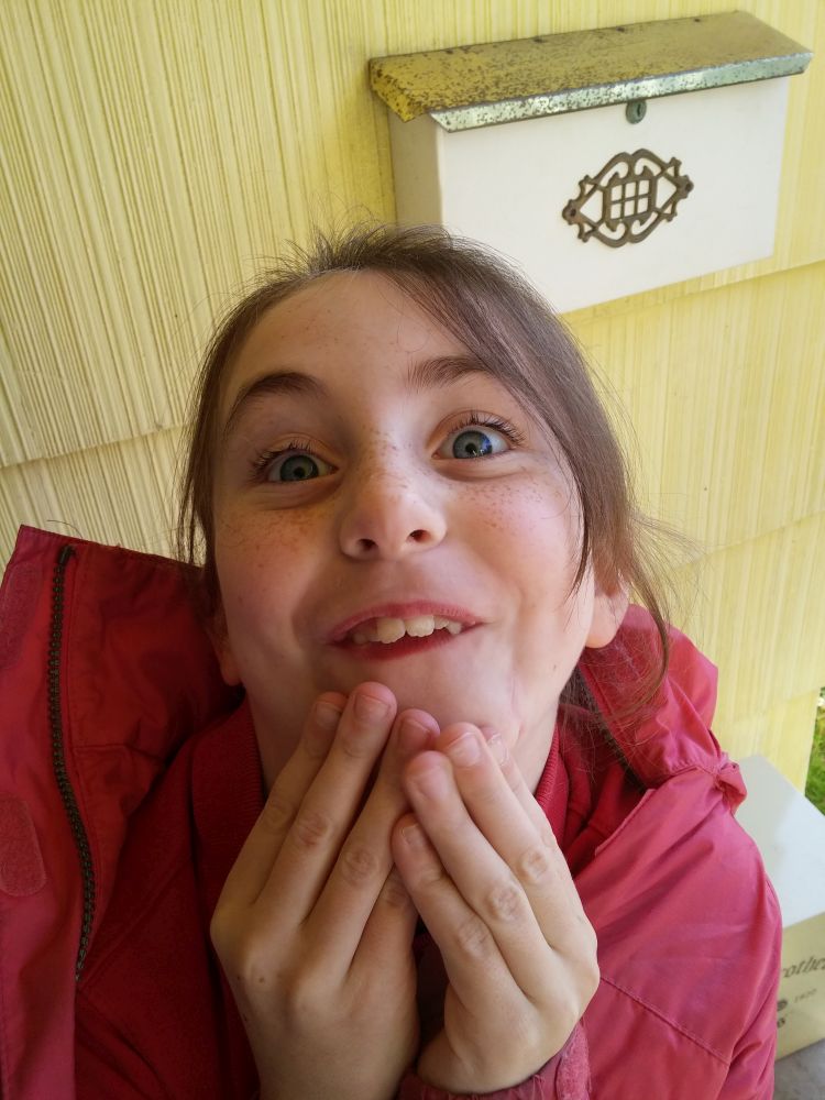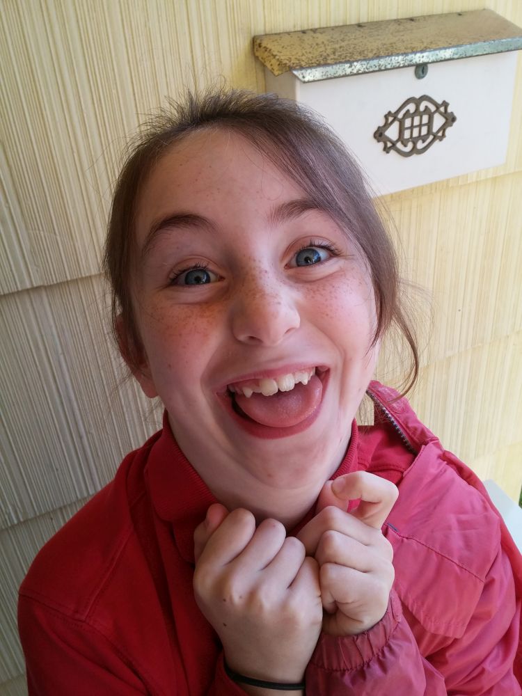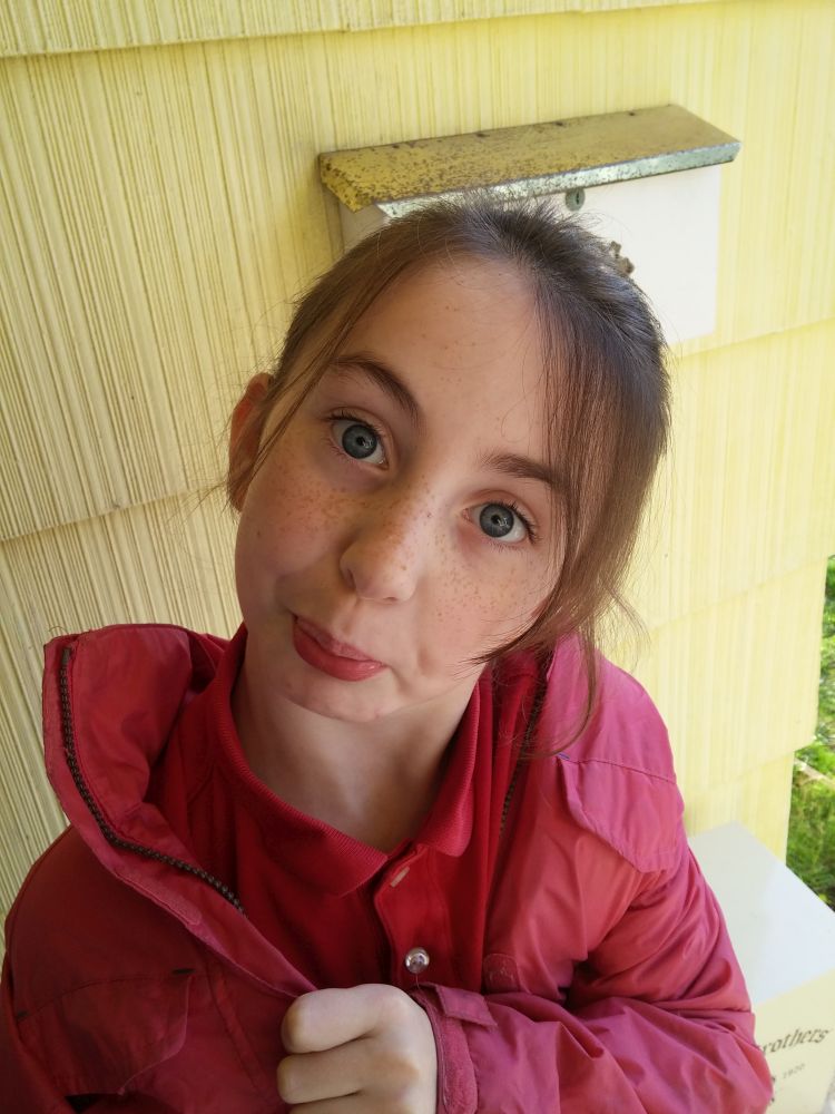 Last week there were no pictures of Déla at all. I was in danger of the same thing happening this week. Here she is getting ready to go to school this morning.