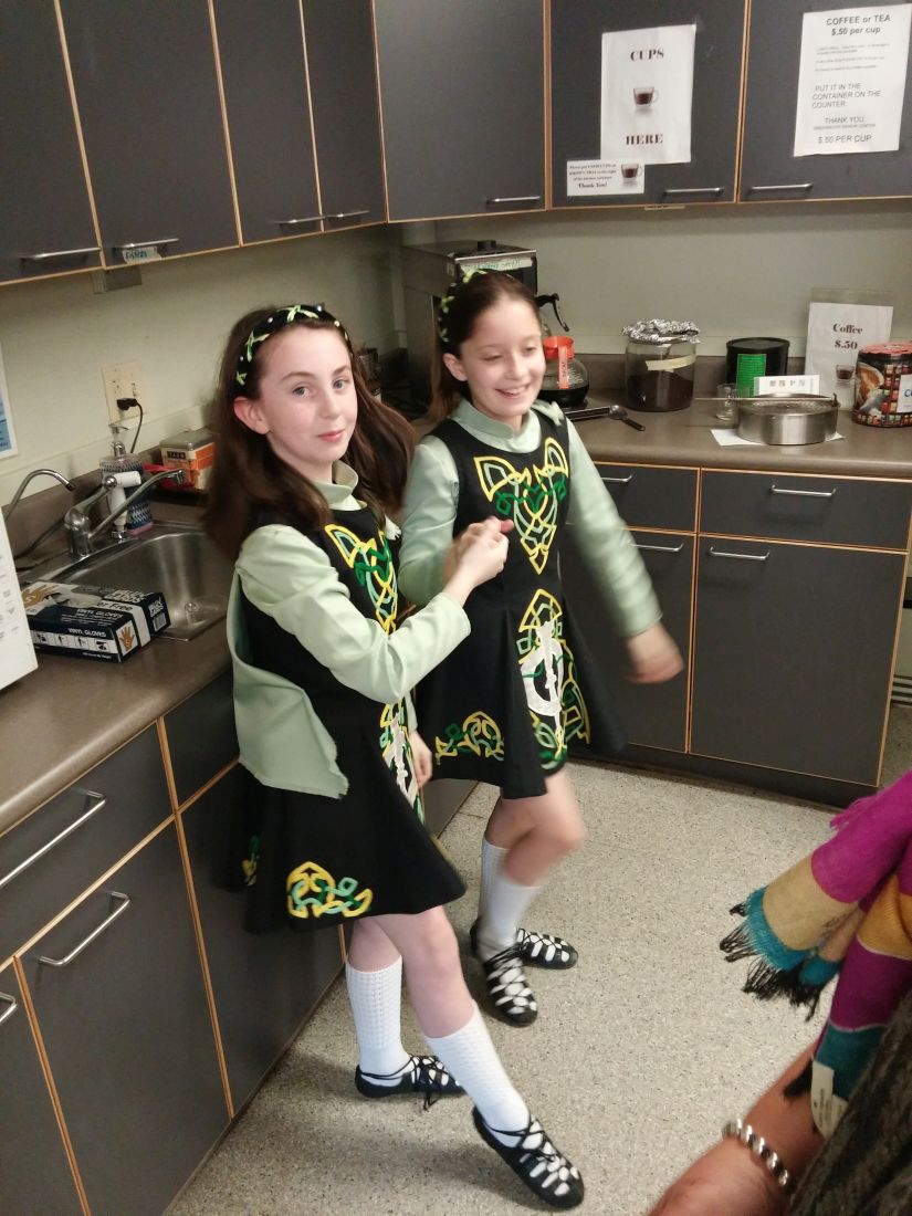 Tuesday was St. Patricks Day, and Déla danced at Laura’s school. Here she is waiting for the performance to start. It’s one of my favorite recent pictures of her.
