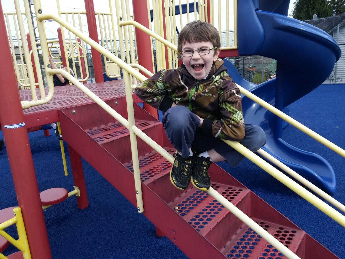Xavier had gymnastics this morning, and like Déla, it was the end of the session so he was given a participation medal. He doesn’t seem too excited about it though.