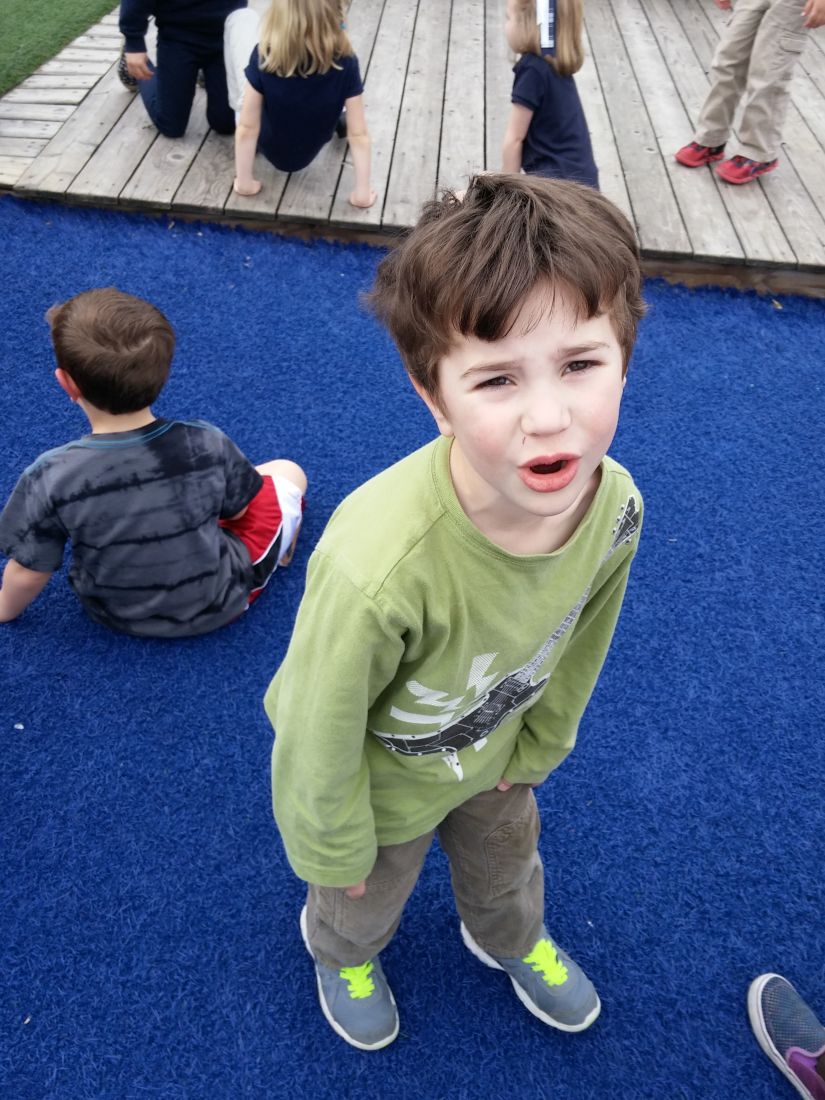 In my previous post I mentioned Déla performed last Friday for the senior center then came back to school for a couple of demonstrations. When she did, we ran into Ciárán and Xavier on the playground.