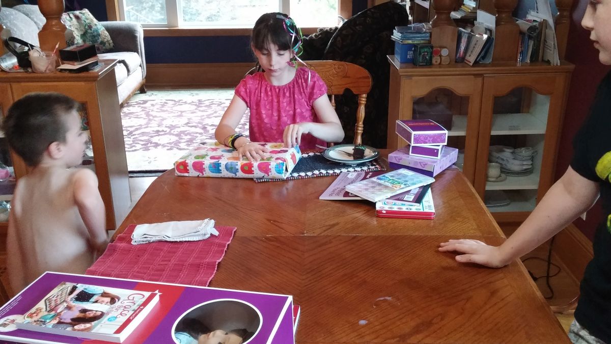 After dinner it was time for us to finish off what was left of the cake for for Déla to open her presents, since it was her actual birthday.